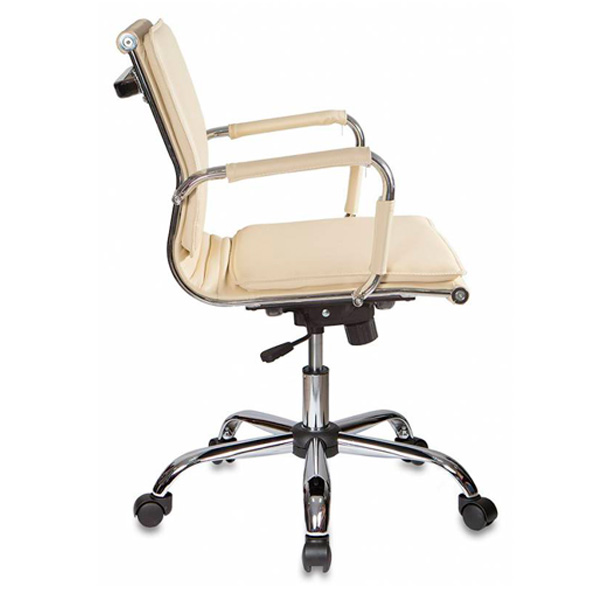 Кресло руководителя современного дизайна Конструкция: Механизм со смещенной осью качания с регулировкой под вес и фиксацией в вертикальном положении Регулировка высоты газлифт Каркас металлический хромированный Подлокотники с накладками из искусственной кожи