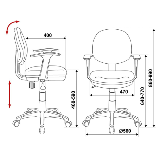 Компактное рабочее кресло Конструкция: Регулировка высоты (газлифт) Пружинно-винтовой механизм качания спинки Цвета пластика: черный
