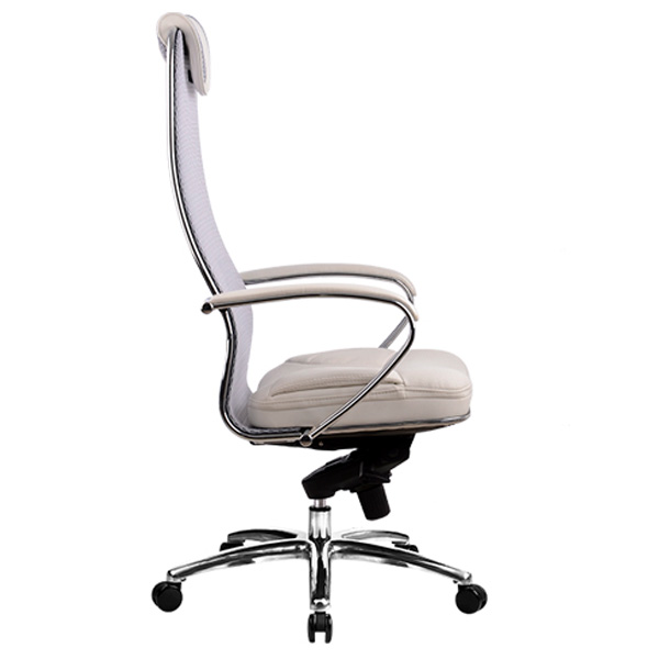 Преимущества: Абсолютно эргономичная форма спинки соответствует анатомической форме тела человека, Новая эргономичная форма спинки, помимо улучшения эргономических свойств, придает креслу устойчивость при максимальном отклонении. Двухзонная регулировка подпора поясницы обеспечивает идеальную поддержку спины независимо от комплекции сидящего, Сверхпрочный стальной каркас спинки и сиденья, покрытый зеркальным хромом, Гарантия 10 лет: на сетчатую ткань, армированную арамидным волокном и на стальной каркас, Синхромеханизм качания MULTIBLOCK, благодаря раздельному синхронному отклонению спинки и сиденья, позволяет телу периодически разгибаться, что улучшает кровоток и разминает мышцы спины, Возможность фиксации кресла в любом положении отклонения, Смещенный вперед центр качания позволяет стопам сидящего, при отклонении кресла, оставаться на полу, сосуды не пережимаются - сохраняется ощущение легкости в ногах, Регулировка глубины сиденья с помощью специального слайдера, обеспечивает эргономически правильную посадку пользователя в кресле, создавая дополнительный комфорт и удобство. Предусмотрена возможность фиксации глубины сиденья в пяти позициях. Пятилучье зеркальное литое с противооткатными полиуретановыми роликами, Противооткатные полиуретановые ролики обеспечивают дополнительную безопасность эксплуатации кресла: без нагрузки - предотвращают случайное перемещение кресла, при сидении - позволяют легко перемещаться. Ролики долговечные, бесшумные, не оставляют следов и царапин на полу, увеличенного диаметра (60 мм), Подголовник: мягкий комфортный из перфорированного износостойкого материала NewLeather*, Обновленный дизайн подголовника Подлокотники: стальные, покрытые зеркальным хромом, с мягкими накладками из износостойкого материала NewLeather*, Мягкое объемное сиденье обеспечивает дополнительный комфорт и ощущение мягкости кожаного дивана, Материалы обивки спинки: сверхпрочная сетчатая ткань, армированная арамидным волокном, Материалы обивки сиденья: перфорированный износостойкий материал NewLeather*, Сетчатая ткань, армированная высокопрочным арамидным волокном, позволяет Вашему телу свободно ?дышать?, сохраняя температурный баланс, исключая любые зоны перегрева в местах соприкосновения. Полимерная плетеная ткань с невероятной прочностью и износостойкостью. **Высота сиденья в верхнем и нижнем положении может быть изменена, в зависимости от модели применяемого газ-лифта.