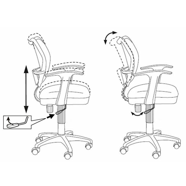 Эргономичное рабочее кресло Конструкция: Пружинно-винтовой механизм качания спинки Регулировка высоты газлифт Эргономичная спинка сетка