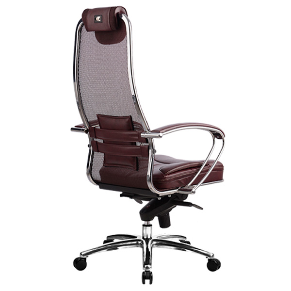 Преимущества: Абсолютно эргономичная форма спинки соответствует анатомической форме тела человека, Новая эргономичная форма спинки, помимо улучшения эргономических свойств, придает креслу устойчивость при максимальном отклонении. Двухзонная регулировка подпора поясницы обеспечивает идеальную поддержку спины независимо от комплекции сидящего, Сверхпрочный стальной каркас спинки и сиденья, покрытый зеркальным хромом, Гарантия 10 лет: на сетчатую ткань, армированную арамидным волокном и на стальной каркас, Синхромеханизм качания MULTIBLOCK, благодаря раздельному синхронному отклонению спинки и сиденья, позволяет телу периодически разгибаться, что улучшает кровоток и разминает мышцы спины, Возможность фиксации кресла в любом положении отклонения, Смещенный вперед центр качания позволяет стопам сидящего, при отклонении кресла, оставаться на полу, сосуды не пережимаются - сохраняется ощущение легкости в ногах, Регулировка глубины сиденья с помощью специального слайдера, обеспечивает эргономически правильную посадку пользователя в кресле, создавая дополнительный комфорт и удобство. Предусмотрена возможность фиксации глубины сиденья в пяти позициях. Пятилучье зеркальное литое с противооткатными полиуретановыми роликами, Противооткатные полиуретановые ролики обеспечивают дополнительную безопасность эксплуатации кресла: без нагрузки - предотвращают случайное перемещение кресла, при сидении - позволяют легко перемещаться. Ролики долговечные, бесшумные, не оставляют следов и царапин на полу, увеличенного диаметра (60 мм), Подголовник: мягкий комфортный из перфорированного износостойкого материала NewLeather*, Обновленный дизайн подголовника Подлокотники: стальные, покрытые зеркальным хромом, с мягкими накладками из износостойкого материала NewLeather*, Мягкое объемное сиденье обеспечивает дополнительный комфорт и ощущение мягкости кожаного дивана, Материалы обивки спинки: сверхпрочная сетчатая ткань, армированная арамидным волокном, Материалы обивки сиденья: перфорированный износостойкий материал NewLeather*, Сетчатая ткань, армированная высокопрочным арамидным волокном, позволяет Вашему телу свободно ?дышать?, сохраняя температурный баланс, исключая любые зоны перегрева в местах соприкосновения. Полимерная плетеная ткань с невероятной прочностью и износостойкостью. **Высота сиденья в верхнем и нижнем положении может быть изменена, в зависимости от модели применяемого газ-лифта.