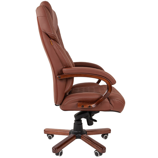 Обивка Экопремиум Подлокотники Деревянные с мягкими накладками обитыми экокожей Механизм качания Механизм качания повышенной комфортности с возможностью фиксации кресла в любом положении Крестовина Металлическая крестовина, деревянные накладки, защитные пластиковые элементы. Газпатрон 3 класса по стандарту Germany DIN 4550 Ролики Стандарт BIFMA 5,1 США. Диаметр штока 11 мм. Каркас Немонолитный Набивка кресла Стандартный поролон плотности 22-40 кг/м3