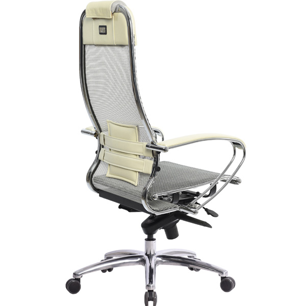 Преимущества: Абсолютно эргономичная форма спинки соответствует анатомической форме тела человека, Новая эргономичная форма спинки, помимо улучшения эргономических свойств, придает креслу устойчивость при максимальном отклонении. Двухзонная регулировка подпора поясницы обеспечивает идеальную поддержку спины независимо от комплекции сидящего, Двухзонная регулировка жесткости сиденья позволяет достичь максимального удобства (сиденье можно сделать мягче или жестче), а также при необходимости настроить угол наклона сиденья за счет разного натяжения передней и задней зоны, Сверхпрочный стальной каркас спинки и сиденья, покрытый зеркальным хромом, Гарантия 10 лет: на сетчатую ткань, армированную арамидным волокном и на стальной каркас, Синхромеханизм качания MULTIBLOCK, благодаря раздельному синхронному отклонению спинки и сиденья, позволяет телу периодически разгибаться, что улучшает кровоток и разминает мышцы спины, Возможность фиксации кресла в любом положении отклонения, Смещенный вперед центр качания позволяет стопам сидящего, при отклонении кресла, оставаться на полу, сосуды не пережимаются - сохраняется ощущение легкости в ногах, Регулировка глубины сиденья с помощью специального слайдера, обеспечивает эргономически правильную посадку пользователя в кресле, создавая дополнительный комфорт и удобство. Предусмотрена возможность фиксации глубины сиденья в пяти позициях. Пятилучье зеркальное литое с противооткатными полиуретановыми роликами, Противооткатные полиуретановые ролики обеспечивают дополнительную безопасность эксплуатации кресла: без нагрузки - предотвращают случайное перемещение кресла, при сидении - позволяют легко перемещаться. Ролики долговечные, бесшумные, не оставляют следов и царапин на полу, увеличенного диаметра (60 мм), Подголовник: мягкий комфортный из перфорированного износостойкого материала NewLeather*, Обновленный дизайн подголовника Подлокотники: стальные, покрытые зеркальным хромом, с мягкими накладками из износостойкого материала NewLeather*, Материалы обивки спинки и сиденья: сверхпрочная сетчатая ткань, армированная арамидным волокном, Сетчатая ткань, армированная высокопрочным арамидным волокном, позволяет Вашему телу свободно ?дышать?, сохраняя температурный баланс, исключая любые зоны перегрева в местах соприкосновения. Полимерная плетеная ткань с невероятной прочностью и износостойкостью. **Высота сиденья в верхнем и нижнем положении может быть изменена, в зависимости от модели применяемого газ-лифта.