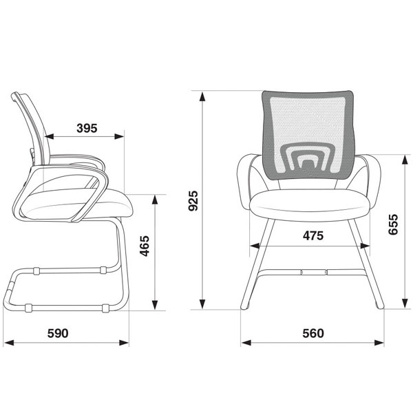 Полозья металлические разборные, крашеные черные Подлокотники пластиковые Ограничение по весу: 120 кг Соответствует стандарту Bifma