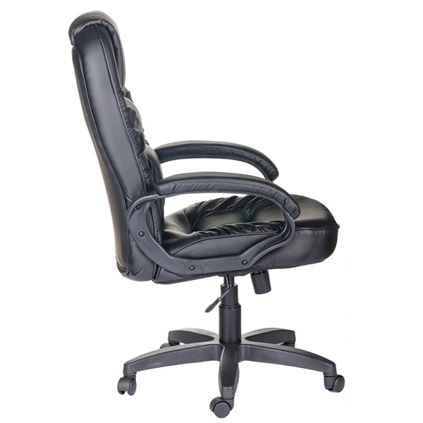 Кресло ?Бруно ULTRA? ? элегантное решение для малого бизнеса и руководителя среднего звена. Крестовина: ?Америка? ? цельнолитая пластиковая (материал ? полиамид стеклонаполненный), диаметр 680 мм. Подлокотники: кресло комплектуется подлокотником с мягкими накладками. Обивочные материалы: ?Заменитель кожи КО?. Газпатрон: стандартный газпатрон марки WDF 2-й категории стабильности по DIN 4550 . Механизм: Топ-Ган (мезханизм качания с регулировкой жесткости и фиксацией в рабочем положении). Ролик: стандартный ролик, диаметр штока 11 мм. Стандарт BIFMA 5.1 (США).