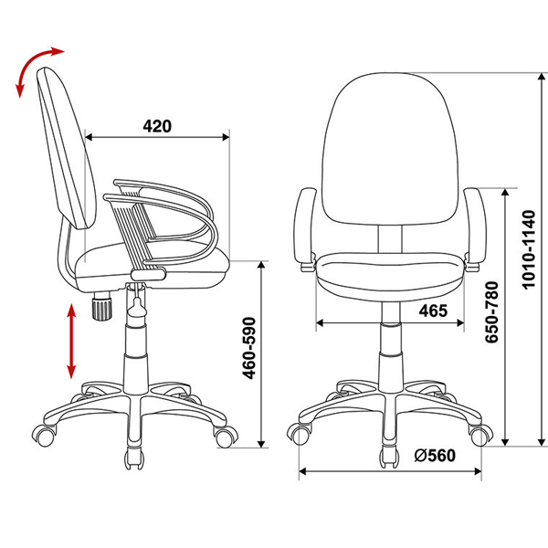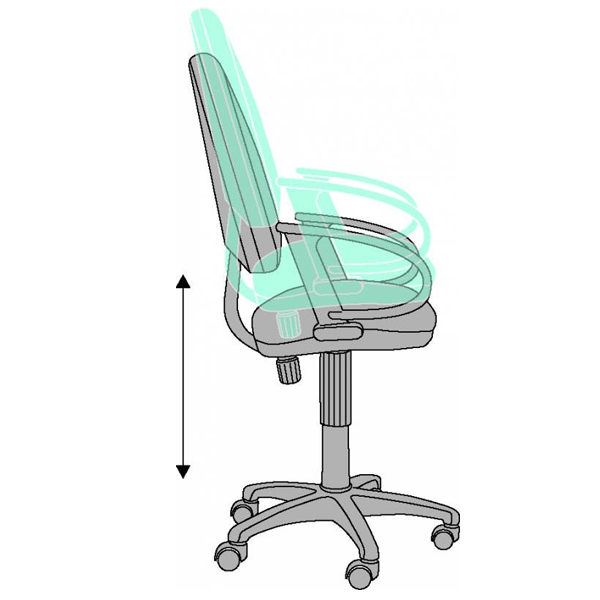 Конструкция: Увеличенная ширина сиденья = 465 мм Пружинно-винтовой механизм качания спинки Регулировка высоты газлифт