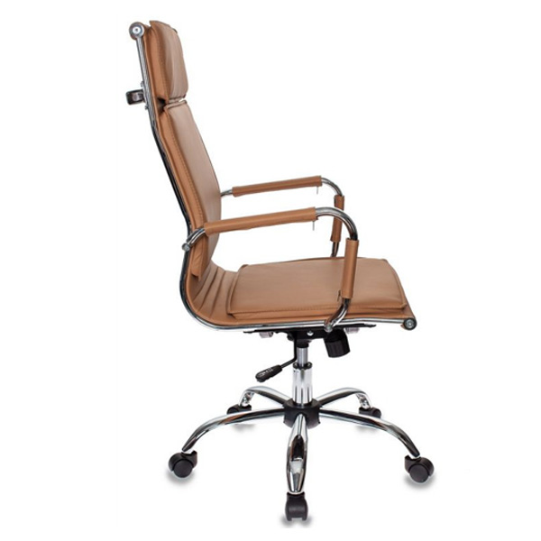 Кресло руководителя современного дизайна Конструкция: Механизм со смещенной осью качания с регулировкой под вес и фиксацией в вертикальном положении Регулировка высоты газлифт Каркас металлический хромированный Подлокотники металлические хромированные с накладками из искусственной кожи