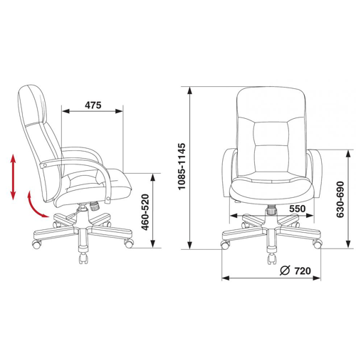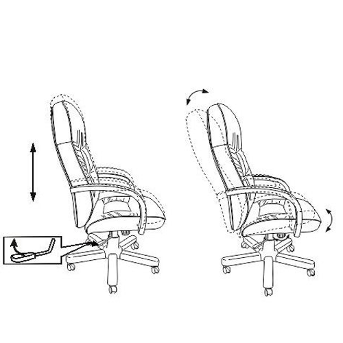 Механизм качания с фиксацией в вертикальном положении Регулировка высоты газлифт Крестовина металлическая с деревянными накладками Подлокотники деревянные Обивка: кожа
