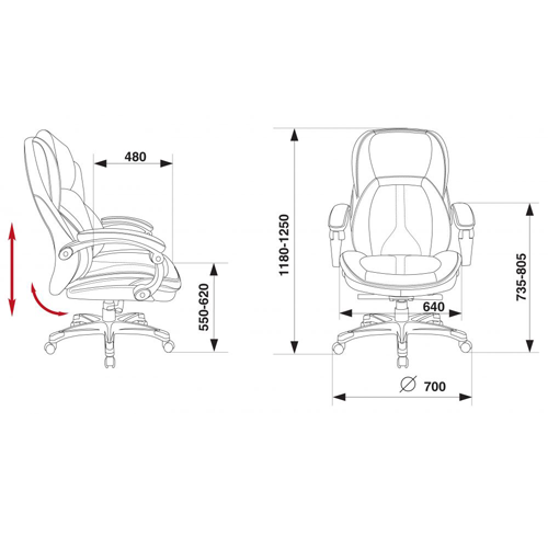 Саморегулирующийся механизм качания с регулировкой под вес Регулировка высоты газлифт Подвижные пластиковые подлокотники с мягкими накладками Пластиковая крашеная крестовина с накладками Материал обивки: рециклированная кожа, искусственная кожа задняя часть спинки