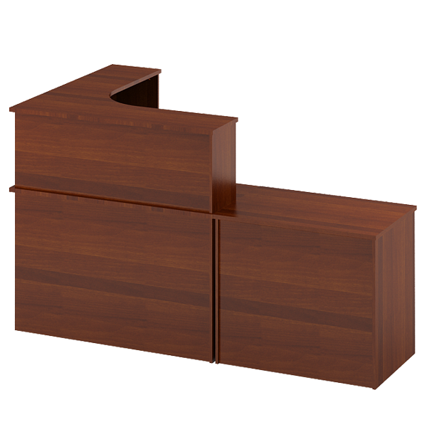 Стойка ресепшн цвета Орех Итальянский - выполнена из ЛДСП. Толщина столешницы столов 22 мм Крёпежная и лицевая фурнитура производства России. Состоит из: ПСУ-11 Угловой элемент 120*120*118 см - 1 шт СТЦ-41 Стол с царгой в пол 90*60*76 см - 1 шт * дополнительно можно заказать стяжки в стоимость не включено