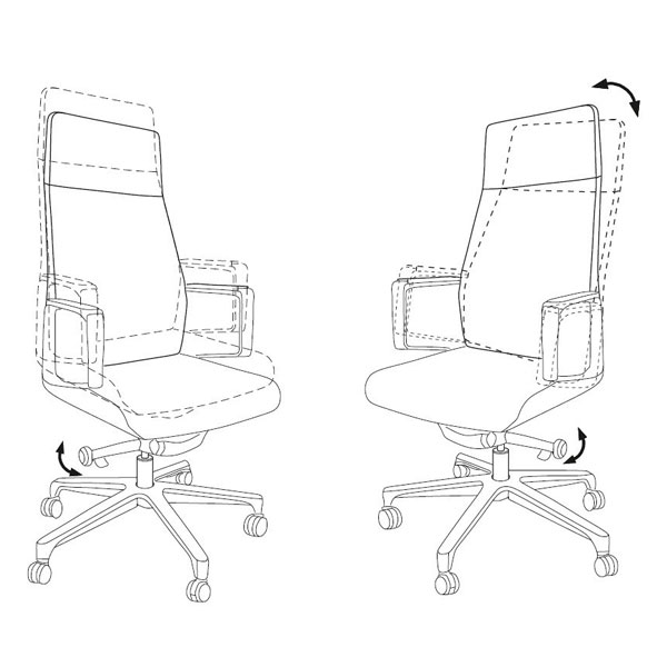 Современное кресло руководителя Механизм со смещенной осью качания с возможностью фиксации в 5 положениях Регулировка высоты (газлифт) Подлокотники алюминиевые с накладками Крестовина - полированный алюминий Колеса для паркета/ламината