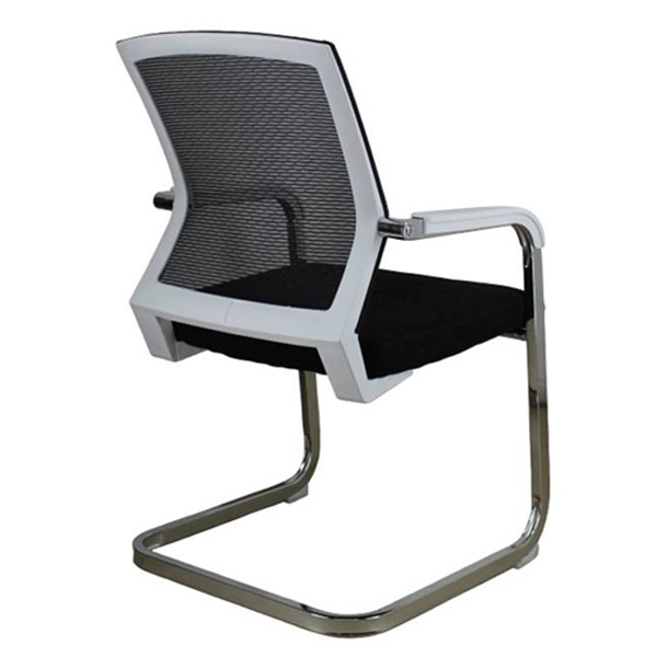 Кресло для посетителей современного дизайна. ?Каркас металлический хромированный прямоугольного сечения. ?На подлокотниках пластиковые накладки. ?Спинка и подлокотники белого цвета. ?Обивка спинки: сетчатый акрил, обивка сидения: ткань повышенной плотности.
