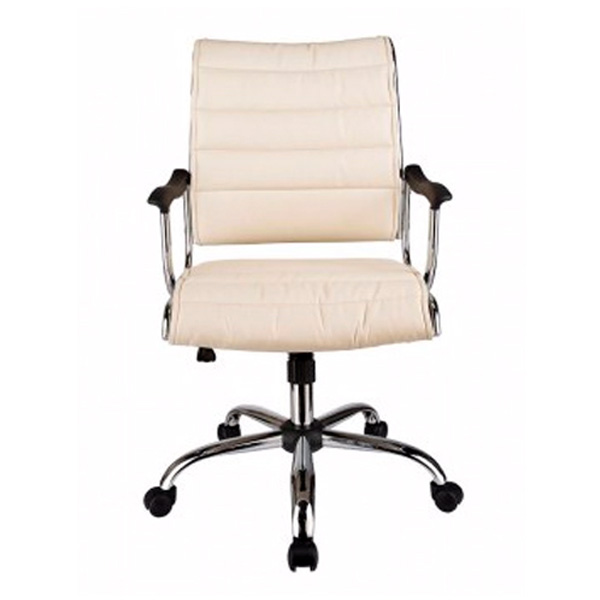 Кресло руководителя современного дизайна Конструкция: Низкая спинка Механизм качания с регулировкой под вес и фиксацией в вертикальном положении Регулировка высоты газлифт Каркас металлический хромированный Подлокотники с пластиковыми накладками