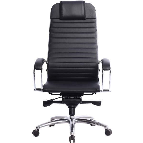Отличие от других моделей серии Samurai: - высокая спинка кресла с мягким накладным подголовником, - натяжное кожаное сиденье и спинка (дополнительно комплектуется съемным особо мягким кожаным чехлом для сиденья) из износостойкого перфорированного материала NewLeather. - стальные подлокотники с мягкой накладкой из износостойкого материала NewLeather. Преимущества: Абсолютно эргономичная форма спинки соответствует анатомической форме тела человека, Новая эргономичная форма спинки, помимо улучшения эргономических свойств, придает креслу устойчивость при максимальном отклонении Двухзонная регулировка подпора поясницы обеспечивает идеальную поддержку спины независимо от комплекции сидящего, Двухзонная регулировка жесткости сиденья позволяет достичь максимального удобства (сиденье можно сделать мягче или жестче), а также при необходимости настроить угол наклона сиденья за счет разного натяжения передней и задней зоны, Сверхпрочный стальной каркас спинки и сиденья, покрытый зеркальным хромом, Гарантия 10 лет: на стальной каркас, Синхромеханизм качания MULTIBLOCK, благодаря раздельному синхронному отклонению спинки и сиденья, позволяет телу периодически разгибаться, что улучшает кровоток и разминает мышцы спины, Возможность фиксации кресла в любом положении отклонения, Смещенный вперед центр качания позволяет стопам сидящего, при отклонении кресла, оставаться на полу, сосуды не пережимаются - сохраняется ощущение легкости в ногах, Регулировка глубины сиденья с помощью специального слайдера, обеспечивает эргономически правильную посадку пользователя в кресле, создавая дополнительный комфорт и удобство. Предусмотрена возможность фиксации глубины сиденья в пяти позициях. Пятилучье зеркальное литое с противооткатными полиуретановыми роликами, Противооткатные полиуретановые ролики обеспечивают дополнительную безопасность эксплуатации кресла: без нагрузки - предотвращают случайное перемещение кресла, при сидении - позволяют легко перемещаться. Ролики долговечные, бесшумные, не оставляют следов и царапин на полу, увеличенного диаметра (60 мм), Подголовник: мягкий комфортный из перфорированного износостойкого материала NewLeather*, Обновленный дизайн подголовника: Подлокотники: стальные, покрытые зеркальным хромом, с мягкими накладками из износостойкого материала NewLeather*, Материалы обивки спинки и сиденья: перфорированный износостойкий материал NewLeather*. *NewLeather ? инновационный экологически чистый материал, производимый из натуральной кожи, армирован нейлоновой нитью, имеет волокнистую натуральную основу, благодаря чему данный материал не уступает обычной натуральной коже по эластичности, прочности и износостойкости. При этом перфорация обеспечивает уникальные ?дышащие? свойства, не уступающие даже ткани и значительно превосходящие ?дышащие? свойства обычной натуральной кожи. **Высота сиденья в верхнем и нижнем положении может быть изменена, в зависимости от модели применяемого газ-лифта.