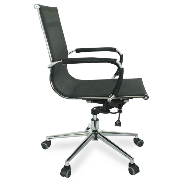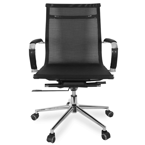 Механизм качания повышенной комфортности и фиксацией в вертикальном положении Регулировка высоты (газлифт) Каркас металлический хромированный Подлокотники хромированные с накладками Материал обивки: сетка ПВХ