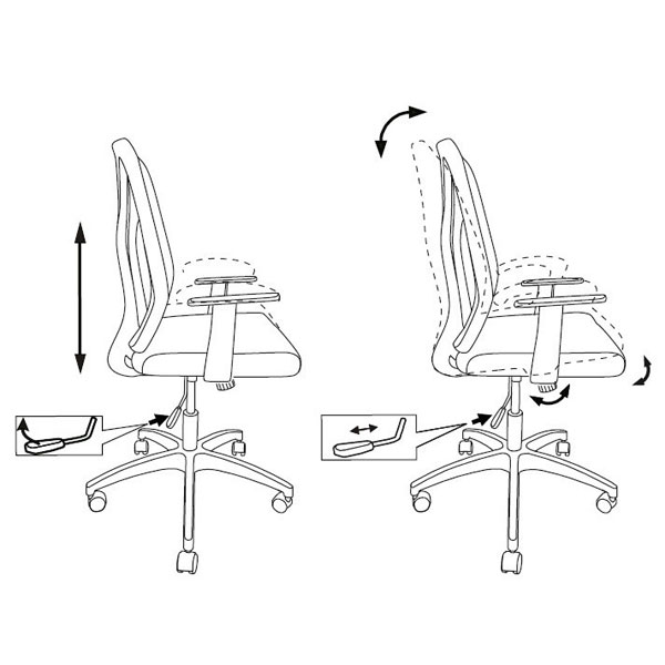 Синхромеханизм качания с возможностью фиксации в вертикальном положении Регулировка высоты (газлифт) Подлокотники пластиковые Крестовина пластиковая