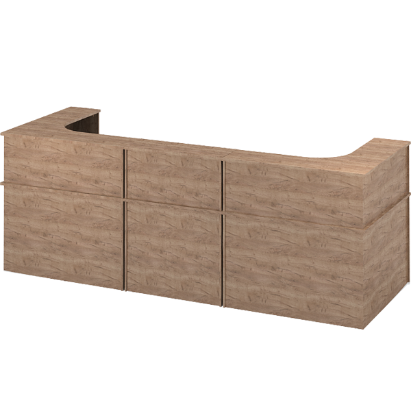 Стойка ресепшн округлая с нишами внутри, выполнена из ЛДСП, толщина столешницы 22 мм, боковые стенки ? 16 мм. Торцы деталей обработаны противоударной износостойкой кромочной лентой ПВХ толщиной 2 мм немецкого концерна ?REHAU?. Крёпежная и лицевая фурнитура производства России. Комплект состоит: ПСУ-11 Угловой элемент 120*120*118 см - 2 шт, СТЦ-41 Стол 90*60*76 см - 1 шт, Н-83 Надставка на стол 90*32*42 см - 1 шт. * дополнительно можно заказать стяжки в стоимость не включено