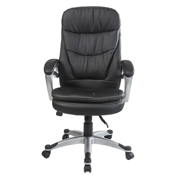Обивка из экокожи. Варианты цветов обивки: чёрный, коричневый. Подлокотники широкие пластиковые с напылением под металл и мягкими накладками из экокжи. Крестовина пластиковая с напылением под металл и пластиковыми накладками для ног. Механизм подъёма. Газпатрон стандарт BIFMA 5.1. Механизм качания с фиксацией в любом положении. Размеры указаны справочные, подробную информацию уточняйте у менеджера. Кресло для руководителя 7174 сразу привлекает внимание своим продуманным дизайном. Оно имеет высокую мягкую спинку, просторное сиденье, необычные подлокотники и изящную крестовину. Качественная обивка из экокожи и механизм качания являются дополнительными преимуществами данной модели, а экономичная цена делает кресло 7174 настоящим бестселлером в своём классе.