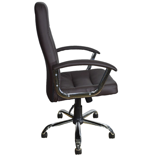Офисное кресло для руководителя КР16. Каркас - немонолитный, гнутоклееный, фанерный подлокотники и пятилучье - хром, механизм качания ? с фиксацией в рабочем положении, ролики полиамидные.