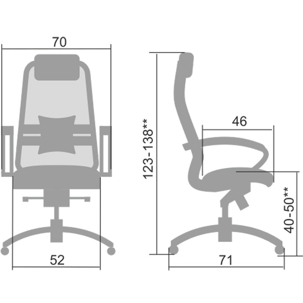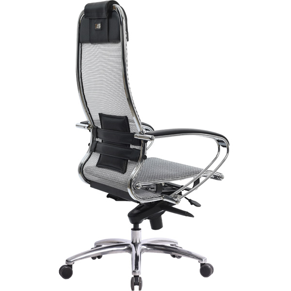 Преимущества: Абсолютно эргономичная форма спинки соответствует анатомической форме тела человека, Новая эргономичная форма спинки, помимо улучшения эргономических свойств, придает креслу устойчивость при максимальном отклонении. Двухзонная регулировка подпора поясницы обеспечивает идеальную поддержку спины независимо от комплекции сидящего, Двухзонная регулировка жесткости сиденья позволяет достичь максимального удобства (сиденье можно сделать мягче или жестче), а также при необходимости настроить угол наклона сиденья за счет разного натяжения передней и задней зоны, Сверхпрочный стальной каркас спинки и сиденья, покрытый зеркальным хромом, Гарантия 10 лет: на сетчатую ткань, армированную арамидным волокном и на стальной каркас, Синхромеханизм качания MULTIBLOCK, благодаря раздельному синхронному отклонению спинки и сиденья, позволяет телу периодически разгибаться, что улучшает кровоток и разминает мышцы спины, Возможность фиксации кресла в любом положении отклонения, Смещенный вперед центр качания позволяет стопам сидящего, при отклонении кресла, оставаться на полу, сосуды не пережимаются - сохраняется ощущение легкости в ногах, Регулировка глубины сиденья с помощью специального слайдера, обеспечивает эргономически правильную посадку пользователя в кресле, создавая дополнительный комфорт и удобство. Предусмотрена возможность фиксации глубины сиденья в пяти позициях. Пятилучье зеркальное литое с противооткатными полиуретановыми роликами, Противооткатные полиуретановые ролики обеспечивают дополнительную безопасность эксплуатации кресла: без нагрузки - предотвращают случайное перемещение кресла, при сидении - позволяют легко перемещаться. Ролики долговечные, бесшумные, не оставляют следов и царапин на полу, увеличенного диаметра (60 мм), Подголовник: мягкий комфортный из перфорированного износостойкого материала NewLeather*, Обновленный дизайн подголовника Подлокотники: стальные, покрытые зеркальным хромом, с мягкими накладками из износостойкого материала NewLeather*, Материалы обивки спинки и сиденья: сверхпрочная сетчатая ткань, армированная арамидным волокном, Сетчатая ткань, армированная высокопрочным арамидным волокном, позволяет Вашему телу свободно ?дышать?, сохраняя температурный баланс, исключая любые зоны перегрева в местах соприкосновения. Полимерная плетеная ткань с невероятной прочностью и износостойкостью. **Высота сиденья в верхнем и нижнем положении может быть изменена, в зависимости от модели применяемого газ-лифта.