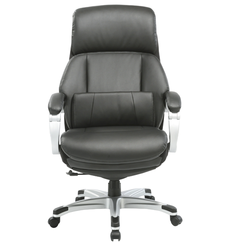 Регулировка высоты газлифт Синхромеханизм Высокая спинка с подголовником Дополнительная подушка под поясницу на скрытом магните Подлокотники подвижные, крашеный пластик, с накладками из иск.кожи Крестовина пластиковая, крашеная, с накладками Выдвижная подставка для ног Материал обивки: рециклированная кожа ХАРАКТЕРИСТИКИ Тип установки: на колесиках Подлокотники: ДА Цвет спинка: черный Материал обивки: кожа/кожзам Особенности модели: подставка для ног