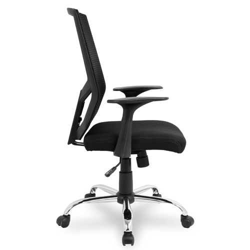 Механизм качания с регулировкой под вес и фиксацией в вертикальном положении. Регулировка высоты (газлифт). Крестовина металлическая, хромированная. Подлокотники выполнены из ударопрочного экологически чистого пластика. Материал обивки: капроновая сетка (спинка) + полиэстер (сидение).