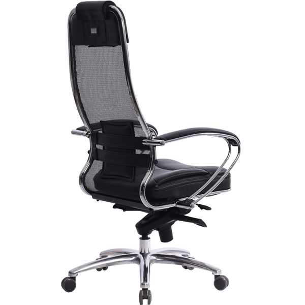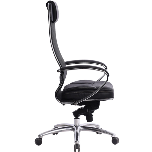 Преимущества: Абсолютно эргономичная форма спинки соответствует анатомической форме тела человека, Новая эргономичная форма спинки, помимо улучшения эргономических свойств, придает креслу устойчивость при максимальном отклонении. Двухзонная регулировка подпора поясницы обеспечивает идеальную поддержку спины независимо от комплекции сидящего, Сверхпрочный стальной каркас спинки и сиденья, покрытый зеркальным хромом, Гарантия 10 лет: на сетчатую ткань, армированную арамидным волокном и на стальной каркас, Синхромеханизм качания MULTIBLOCK, благодаря раздельному синхронному отклонению спинки и сиденья, позволяет телу периодически разгибаться, что улучшает кровоток и разминает мышцы спины, Возможность фиксации кресла в любом положении отклонения, Смещенный вперед центр качания позволяет стопам сидящего, при отклонении кресла, оставаться на полу, сосуды не пережимаются - сохраняется ощущение легкости в ногах, Регулировка глубины сиденья с помощью специального слайдера, обеспечивает эргономически правильную посадку пользователя в кресле, создавая дополнительный комфорт и удобство. Предусмотрена возможность фиксации глубины сиденья в пяти позициях. Пятилучье зеркальное литое с противооткатными полиуретановыми роликами, Противооткатные полиуретановые ролики обеспечивают дополнительную безопасность эксплуатации кресла: без нагрузки - предотвращают случайное перемещение кресла, при сидении - позволяют легко перемещаться. Ролики долговечные, бесшумные, не оставляют следов и царапин на полу, увеличенного диаметра (60 мм), Подголовник: мягкий комфортный из перфорированного износостойкого материала NewLeather*, Обновленный дизайн подголовника Подлокотники: стальные, покрытые зеркальным хромом, с мягкими накладками из износостойкого материала NewLeather*, Мягкое объемное сиденье обеспечивает дополнительный комфорт и ощущение мягкости кожаного дивана, Материалы обивки спинки: сверхпрочная сетчатая ткань, армированная арамидным волокном, Материалы обивки сиденья: перфорированный износостойкий материал NewLeather*, Сетчатая ткань, армированная высокопрочным арамидным волокном, позволяет Вашему телу свободно ?дышать?, сохраняя температурный баланс, исключая любые зоны перегрева в местах соприкосновения. Полимерная плетеная ткань с невероятной прочностью и износостойкостью. **Высота сиденья в верхнем и нижнем положении может быть изменена, в зависимости от модели применяемого газ-лифта.