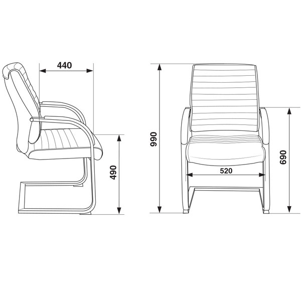 Конструкция: Подлокотники хромированные с мягкими накладками из искусственной кожи Плоские хромированные полозья