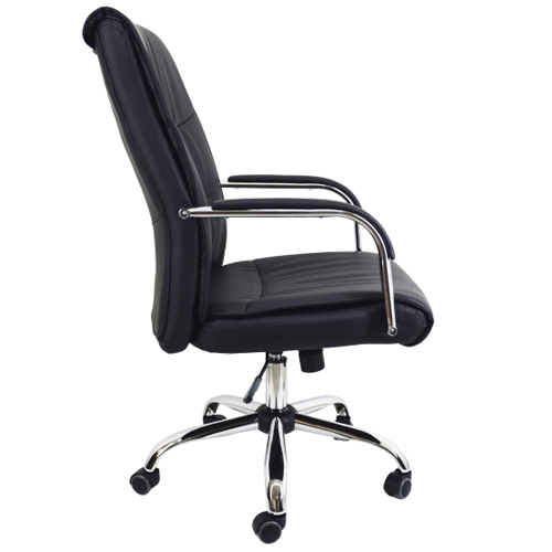 Механизм качания с регулировкой под вес и фиксацией в вертикальном положении . Регулировка высоты газлифт. Каркас металлический обтянут комбинированной экокожей: экокожа со вставками с перфорированной экокожей. Подлокотники металлические хромированные с накладками из экокожи. Крестовина металлическая хромированная.