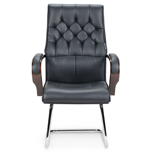 Высококачественное, изящное кресло для переговорных, зон ожидания, выполненное в классическом дизайне. Деревянные подлокотники с мягкими накладками, обитыми экокожей.