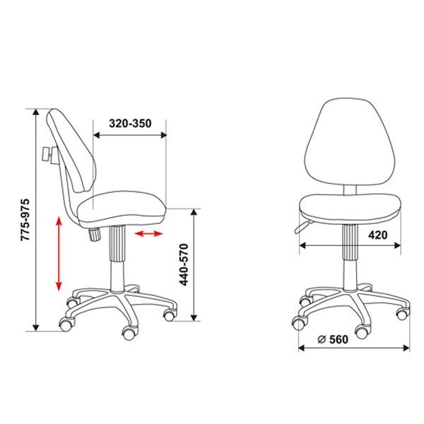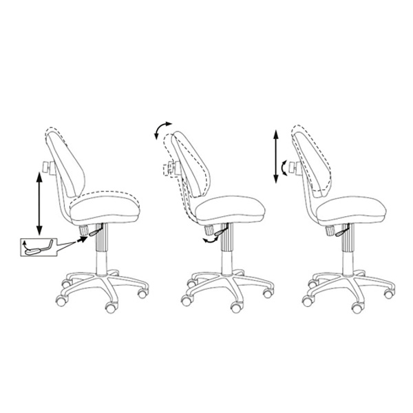 Детское кресло современного дизайна Конструкция: Пружинно-винтовой механизм качания спинки Регулировка высоты (газлифт) Сиденье имеет 2 варианта сборки (перемещается относительно платформы), за счет этого меняется глубина сиденья Спинка пружинит и перемещается вверх-вниз по опоре.
