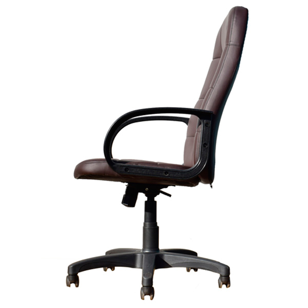 Офисное кресло для руководителя КР02. Каркас - немонолитный, гнутоклееный, фанерный Базовая комплектация: пластиковые подлокотники и пятилучье, механизм качания ? с фиксацией в рабочем положении, ролики полиамидные.