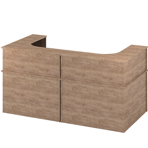 Стойка ресепшн округлая с нишами внутри, выполнена из ЛДСП, толщина столешницы 22 мм, боковые стенки ? 16 мм. Торцы деталей обработаны противоударной износостойкой кромочной лентой ПВХ толщиной 2 мм немецкого концерна ?REHAU?. Крёпежная и лицевая фурнитура производства России. Комплект состоит: ПСУ-11 Угловой элемент 120*120*118 см - 2 шт. * дополнительно можно заказать стяжки в стоимость не включено