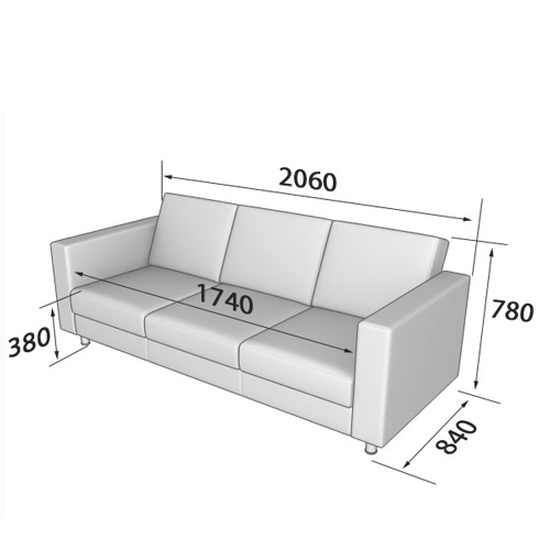 Диван трехместный OFFICE - это стильный, современный и лаконичный нераскладной диван, который идеально впишется в интерьер вашего офиса или в зону отдыха любого помещения. Диван Office имеет съемные подушки. Дополнительно можно приобрести кресло Office. ? Каркас: калиброванный брус из массива хвойных пород дерева, фанера березовая 12 мм, ДВП ? Опоры: металлические ножки высотой 120 мм ? Мягкие элементы: - спинка съемные подушки, двухсторонней мягкости, основание твердое, настил ? подушки из эластичный пенополиуретан толщиной 120 мм сформированный из пенополиуретана 40 мм и пенополиуретана 80 мм плотность 25 кг/м3. ? Сиденье съемные подушки, двухсторонней мягкости, основание твердое, настил ? подушки из эластичный пенополиуретан толщиной 120 мм сформированный из пенополиуретана 40 мм и пенополиуретана 80 мм плотность 25 кг/м3. Срок изготовления 15 рабочих дней. Возможно изготовление в ткани VelvetLUX. Раскладку по цветам и стоимость в данном материале уточняйте у менеджера.