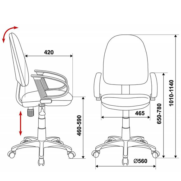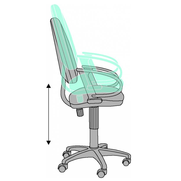 Конструкция: Увеличенная ширина сиденья = 465 мм Пружинно-винтовой механизм качания спинки Регулировка высоты газлифт