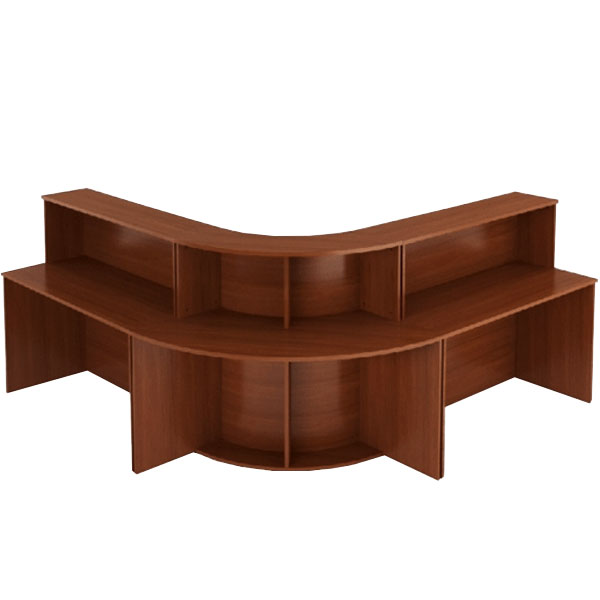 Закругленная стойка ресепшн выполнена из ЛДСП, толщина столешницы 22 мм, боковые стенки ? 16 мм. Торцы деталей обработаны противоударной износостойкой кромочной лентой ПВХ толщиной 2 мм немецкого концерна ?REHAU?. Крёпежная и лицевая фурнитура производства России. Глубина торцов - 60 см В состав входит: ПСУ-71 угловой элемент 112/112/118 см - 1 шт СТ-41 стол с царгой в пол 90/60/76 см - 2 шт Н-83 надставка 90/32/42 см - 2 шт *возможна компоновка с другими размерами, информацию уточняйте у менеджеров * дополнительно можно заказать стяжки в стоимость не включено