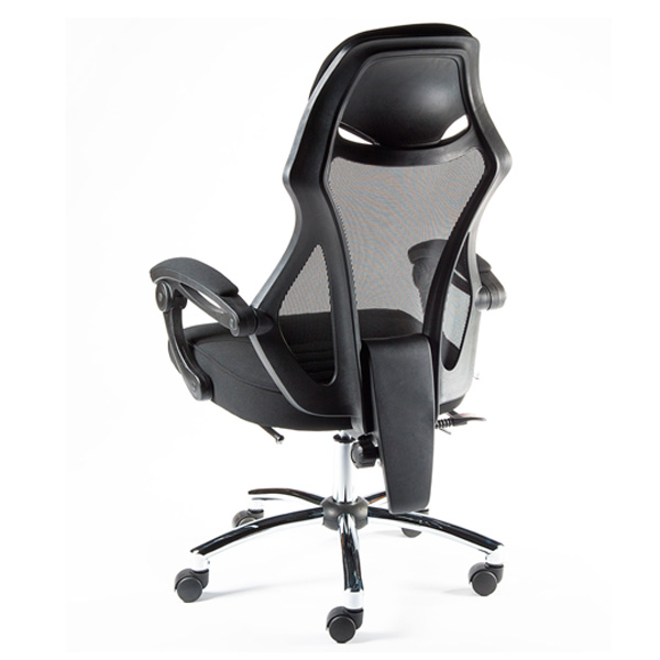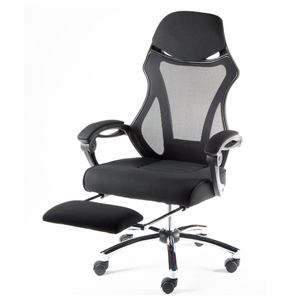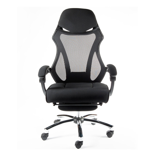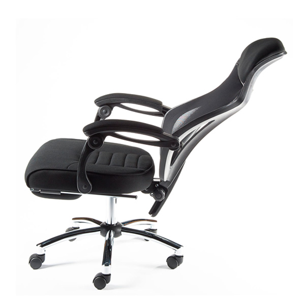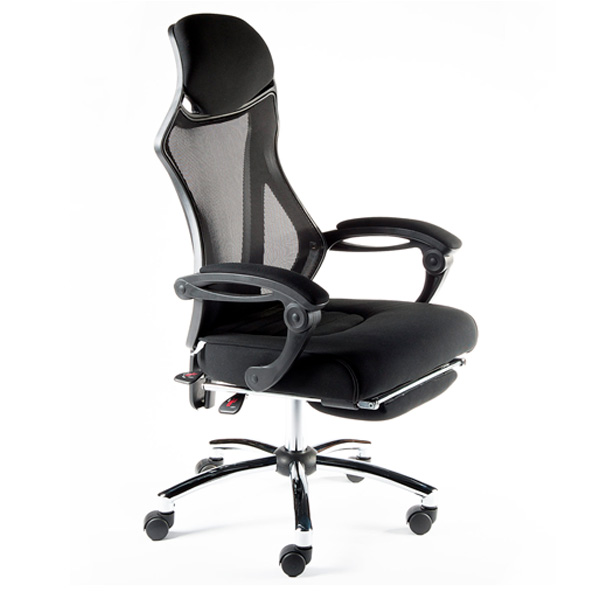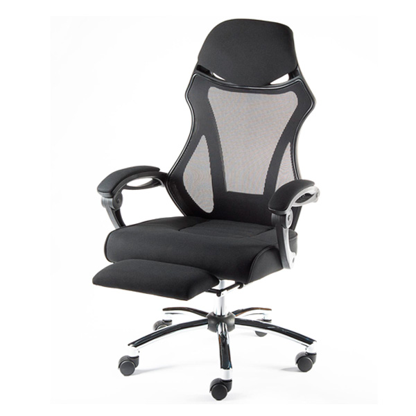 Выдвижная подножка для поддержки ног позволяет принять лежачее положение в минуты отдыха, снимает нагрузку с позвоночника, улучшает кровообращение. При раскладывании кресла ручки двигаются синхронно. Это существенно улучшает эргономику кресла. Спинка регулируется по высоте. Подлокотники с мягкой вставкой. Высокий удобный подголовник. Спинка выполнена из высокопрочной сетки. Подголовники и сиденье покрыты износостойкой тканью. Хромированный газ-патрон Механизм качания с возможностью фиксации в рабочем положении и регулировкой жесткости качания. Крестовина хромированная. Газпатрон 3 категории по стандарту Germany DIN 4550.