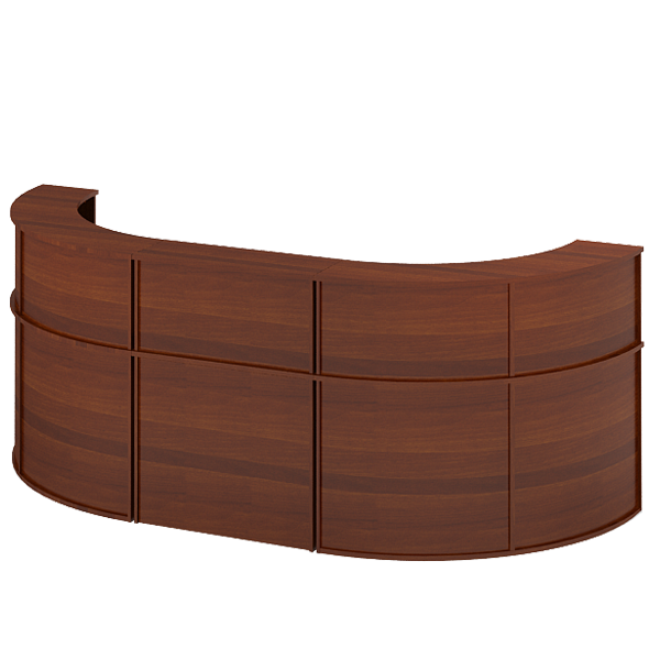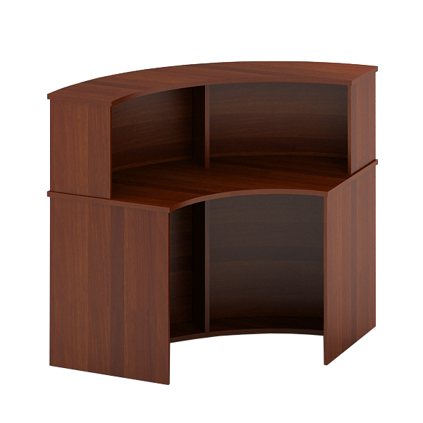 Стойка ресепшн округлая с нишами внутри, выполнена из ЛДСП, толщина столешницы 22 мм, боковые стенки ? 16 мм. Торцы деталей обработаны противоударной износостойкой кромочной лентой ПВХ толщиной 2 мм немецкого концерна ?REHAU?. Крёпежная и лицевая фурнитура производства России. Комплект состоит: ПСУ-70 Угловой элемент 112*112*118 см - 2 шт, Н-83 Надставка на стол 90*32*42 см - 1 шт, СТЦ-41 Стол с царгой в пол 90*60*76 см - 1 шт. * дополнительно можно заказать стяжки в стоимость не включено