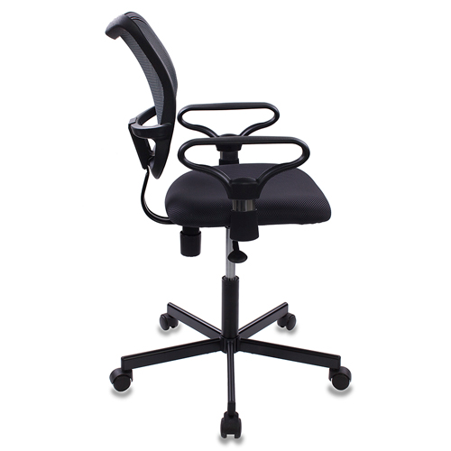 Спинка сетки - темно-серая. Сиденье - серое. Пружинно-винтовой механизм качания спинки, эргономичная спинка сетка, сиденье ткань. Металлическая разборная крестовина. Колеса оснащены тормозом безопасности, реагирующим на изменение давления (катаются только под давлением).