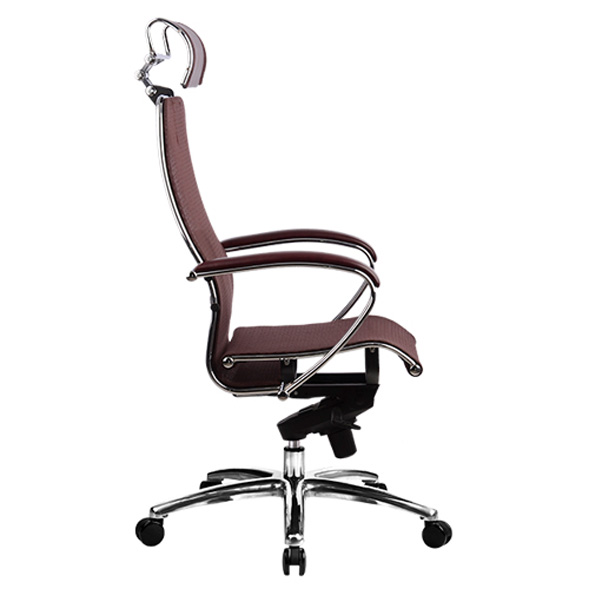 Преимущества: Абсолютно эргономичная форма спинки соответствует анатомической форме тела человека, Новая эргономичная форма спинки, помимо улучшения эргономических свойств, придает креслу устойчивость при максимальном отклонении. Двухзонная регулировка подпора поясницы обеспечивает идеальную поддержку спины независимо от комплекции сидящего, Двухзонная регулировка жесткости сиденья позволяет достичь максимального удобства (сиденье можно сделать мягче или жестче), а также при необходимости настроить угол наклона сиденья за счет разного натяжения передней и задней зоны, Сверхпрочный стальной каркас спинки и сиденья, покрытый зеркальным хромом, Гарантия 10 лет: на сетчатую ткань, армированную арамидным волокном и на стальной каркас, Синхромеханизм качания MULTIBLOCK, благодаря раздельному синхронному отклонению спинки и сиденья, позволяет телу периодически разгибаться, что улучшает кровоток и разминает мышцы спины, Возможность фиксации кресла в любом положении отклонения, Смещенный вперед центр качания позволяет стопам сидящего, при отклонении кресла, оставаться на полу, сосуды не пережимаются - сохраняется ощущение легкости в ногах, Регулировка глубины сиденья с помощью специального слайдера, обеспечивает эргономически правильную посадку пользователя в кресле, создавая дополнительный комфорт и удобство. Предусмотрена возможность фиксации глубины сиденья в пяти позициях. Пятилучье зеркальное литое с противооткатными полиуретановыми роликами, Противооткатные полиуретановые ролики обеспечивают дополнительную безопасность эксплуатации кресла: без нагрузки - предотвращают случайное перемещение кресла, при сидении - позволяют легко перемещаться. Ролики долговечные, бесшумные, не оставляют следов и царапин на полу, увеличенного диаметра (60 мм), Подголовник: Съемный 3D подголовник из перфорированного износостойкого материала NewLeather*, обеспечивает идеальную поддержку головы в любом положении. Регулируется по высоте, глубине, углу наклона. Каркас подголовника: стальной, покрытый зеркальным хромом, Подлокотники: стальные, покрытые зеркальным хромом, с мягкими накладками из износостойкого материала NewLeather* , Материалы обивки спинки и сиденья: сверхпрочная сетчатая ткань, армированная арамидным волокном, Сетчатая ткань, армированная высокопрочным арамидным волокном, позволяет Вашему телу свободно ?дышать?, сохраняя температурный баланс, исключая любые зоны перегрева в местах соприкосновения. Полимерная плетеная ткань с невероятной прочностью и износостойкостью. **Высота сиденья в верхнем и нижнем положении может быть изменена, в зависимости от модели применяемого газ-лифта.