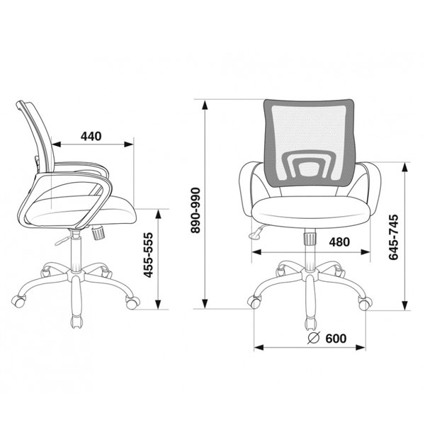 Эргономичное рабочее кресло Механизм качания с регулировкой под вес и возможностью фиксации в вертикальном положении Регулировка высоты (газлифт) Крестовина хром Подлокотники пластиковые Наполнитель сиденья: формованный пенополиуретан Ограничение по весу: 120 кг Соответствует стандарту Bifma