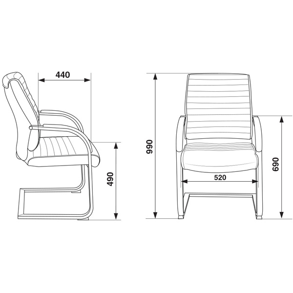 Конструкция: Подлокотники хромированные с мягкими накладками из искусственной кожи Плоские хромированные полозья
