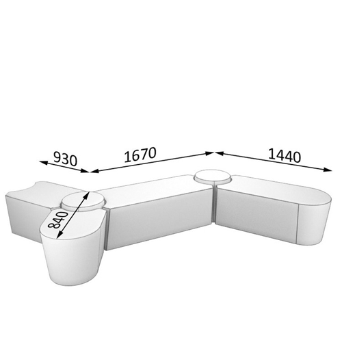 Серия ?Молекула? разработана специально для просторных холлов, больших залов торговых комплексов. Она позволяет эффектно обыграть пространство, создать удобство для посетителей и подчеркнуть стиль. Материалы: -фанера березовая 12мм, брус хвойный, ДВП, пенополиуретан 25/35, периотек Ножки: пластиковые, высотой 30 мм. Крепление секций между собой не предусмотрено Срок изготовления : 15 рабочих дней. Диван состоит из: СЕКЦИЯ МОЛЕКУЛА ВНЕШНЯЯ S - 1 шт СЕКЦИЯ МОЛЕКУЛА ВНУТРЕННЯЯ S - 1 шт ПУФ МОЛЕКУЛА - 2 шт СЕКЦИЯ МОЛЕКУЛА ВНУТРЕННЯЯ L - 1 шт СЕКЦИЯ МОЛЕКУЛА ВНЕШНЯЯ L 1 шт