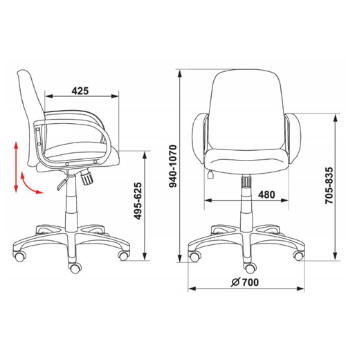 Регулировка высоты (газлифт). Тип механизма качания - с фиксацией в вертикальном положении.