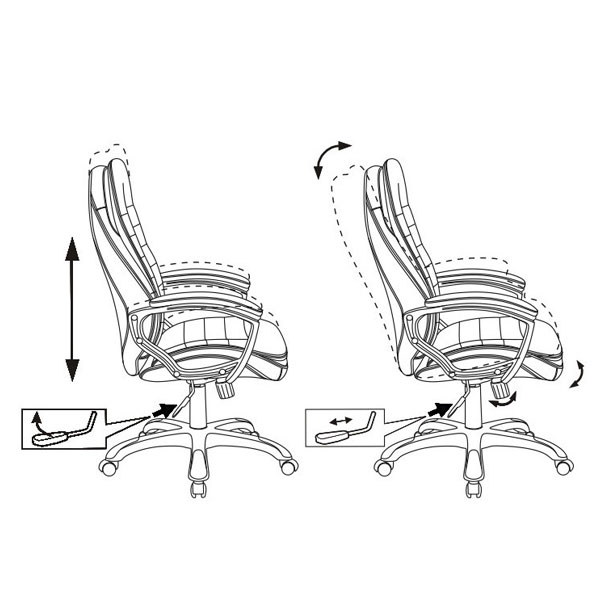 Механизм качания с фиксацией с вертикальном положении Регулировка высоты (газлифт) Подлокотники пластиковые, с мягкими накладками Крестовина пластиковая с защитными накладками