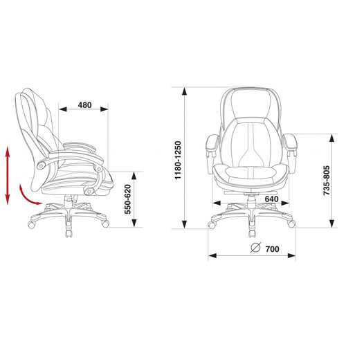Саморегулирующийся механизм качания с регулировкой под вес Регулировка высоты газлифт Подвижные пластиковые подлокотники с мягкими накладками Пластиковая крашеная крестовина с накладками Материал обивки: рециклированная кожа, искусственная кожа задняя часть спинки