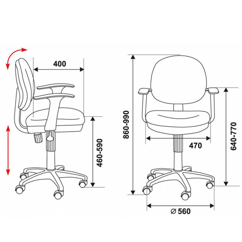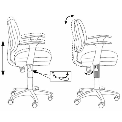 Компактное рабочее кресло Конструкция: Регулировка высоты (газлифт) Пружинно-винтовой механизм качания спинки Цвета пластика: черный