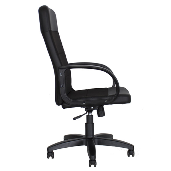Офисное кресло для руководителя пластиковые подлокотники и пятилучье, газлифт L-100мм, механизм качания- MK - с фиксацией в рабочем положении, ролики диаметр штока 11мм.
