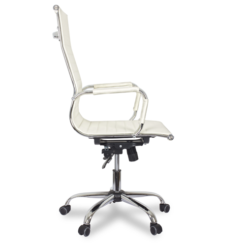 Механизм качания с регулировкой под вес и фиксацией в любом положении Регулировка высоты газлифт Каркас металлический хромированный Подлокотники хромированные с накладками Материал обивки: кожа PU Цвет: Бежевый