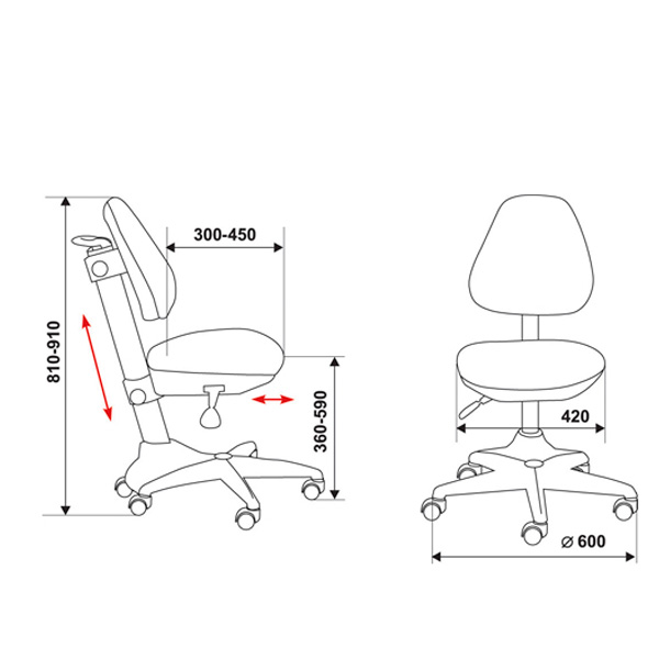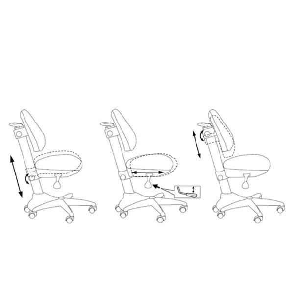 Эргономичное детское кресло Конструкция: Независимые регулировки высоты сиденья и спинки с динамическим изменением глубины сиденья Дополнительная регулировка глубины сиденья Усиленная конструкция Сиденье перемещается по штанге вверх-вниз ипо платформе взад-вперед Эргономичная спинка с жесткой поддержкой спины Спинка пружинит и перемещается вверх-вниз по опоре Ручка для перевозки.